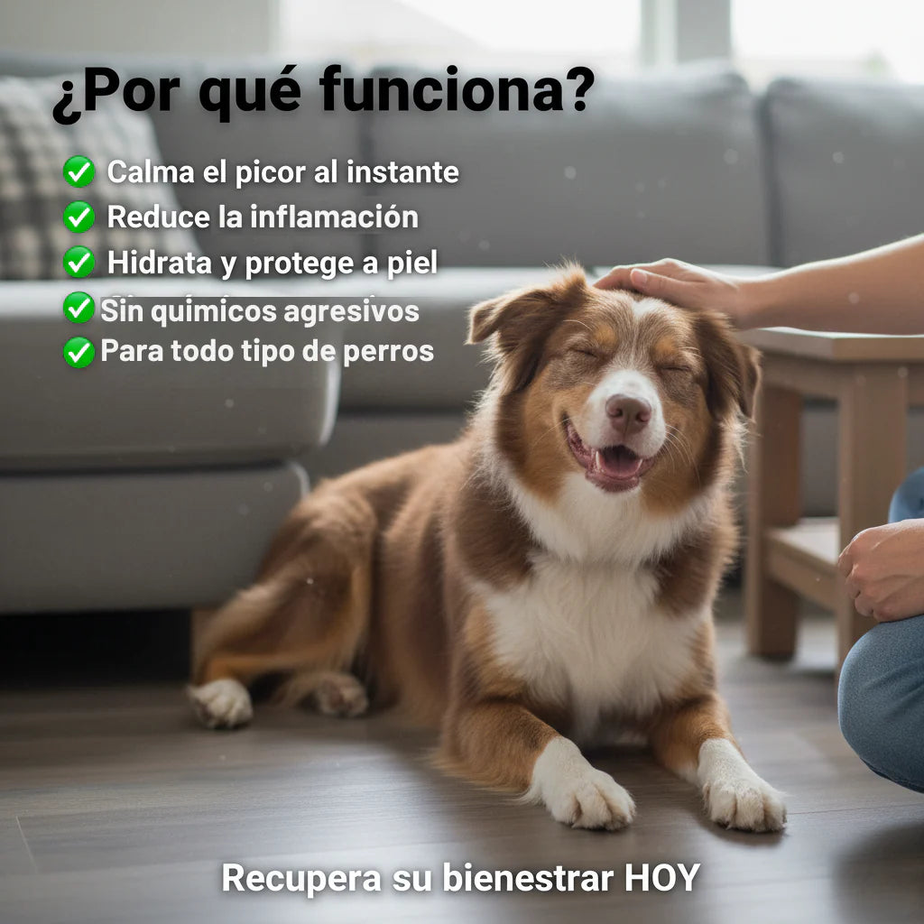 Mi bulldog es alérgico a todo. Este spray no solo no lo irritó, sino que le alivió los granitos y el enrojecimiento. Estoy feliz.