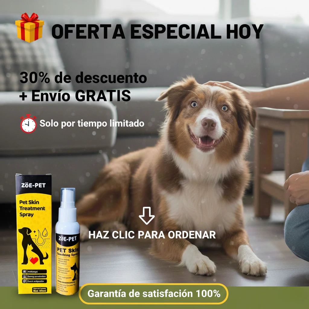 Pet Skin Treatment es un spray regenerador formulado para aliviar la picazón, combatir hongos y bacterias, y acelerar la recuperación de la piel en mascotas. Ideal para perros y gatos con irritaciones, alergias, enrojecimiento, caspa o heridas superficiales. Su fórmula natural y segura calma la piel desde la primera aplicación, sin dejar residuos ni causar efectos secundarios.